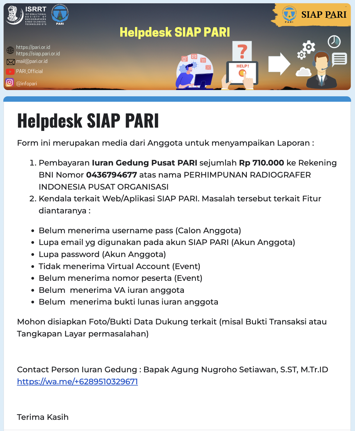Edaran Pembayaran Iuran Wajib Anggota melalui Situs Terkini Persatuan Perawat Nasional Indonesia Kabupaten Tapak Tuan |